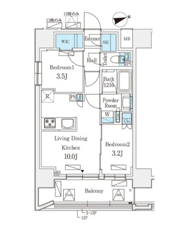 | 建物階数 | 地上13階 | 部屋階数 | 13階 |
