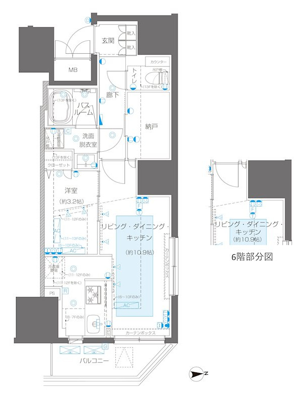 | 建物階数 | 地上13階 | 部屋階数 | 8階 |