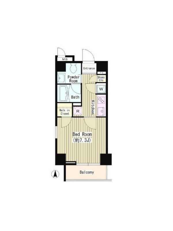 敷金1.0ヶ月、 南向き、 広さ26.17平米のお部屋です。