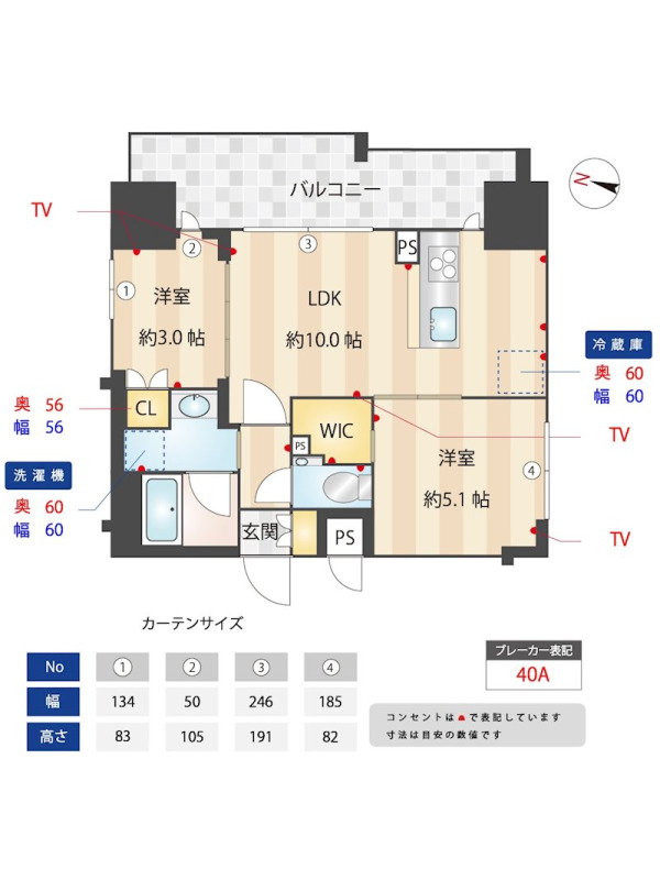 | 向き | 北東 | 建物構造 | RC(鉄筋コンクリート) |