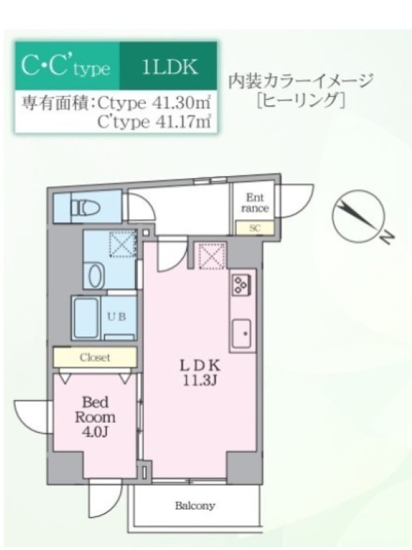 敷金1.0ヶ月、 東向き、 広さ41.71平米のお部屋です。